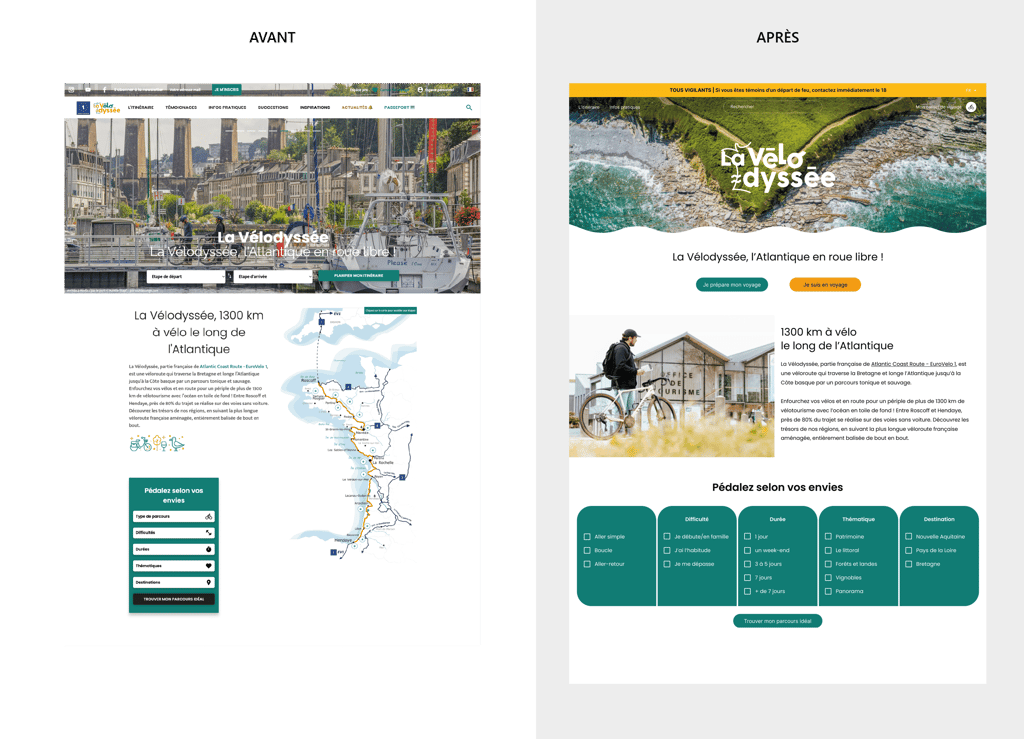 Redesign de plusieurs pages pour le site internet d’une structure organisant des circuits de randonnée touristiques à vélo.Le but était d’améliorer en simplifiant et réorganisant les différentes fonctionnalités qui rendaient l’utilisation trop complexe.